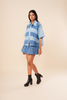 - A light blue oversized half sleeved shirt made in an Organic cotton linen. Cobalt blue hand-stitched pleated symetrical panels covers the front of the shirt. The collars are finished with pleated edges. The concealed placket is finished with swarovski crystal shirt buttons.
