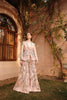 An absolutely different and contemporary take on sharara paired up with an embroidered blazer. The blazer has many highlight points like 3d embroidery, overlapping handcrafted leaves, and hem details. One should choose this ensemble when in the mood to ditch the lehenga.
