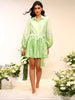 Short Shirt Dress With Embroidered Sleeves, Frill And Tie Up Detailing