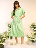 Midi Dress With Front Tie Up And Roll Up Sleeve, Pocket Detailing