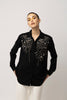 This Black Georgette Shirt is intricately adorned with stones and beads, creating a stunning pattern that sparkles with every turn.