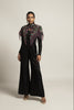 Featuring black jumpsuit in pure satin crepe paired up with the black capelet in mashru silk embellished with the multi-colored cutpipe penetration work with cutdana tassels