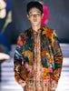 Jungle royalty takes centre stage: vivid tigers prowl through blooming flora, transforming this cotton jacket into a cinematic escape into the wild. The print is rich and hyper-detailed, giving the fabric a plush visual depth while remaining breathable and easy on movement.