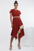 • Description : Introducing the Sumi dress, a sensational statement piece crafted from luxurious handloom fabric with a madder red hue. Its exciting asymmetrical hemline adds an edgy character to this super cool design, making it the perfect choice for the fashion-forward.