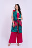 A celebration of colour and ease — this sleeveless overlay in abstract teal and crimson transforms any look into a statement.