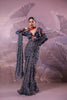Featuring our prussian blue neelumboo print all over jhilmil sequin pre-pleated ruffle saree with attached peticoat complete with our hand embroidered phool sitara signature blouse.
