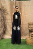 Vivienne, Maxi Dress. Tied Up At The Top Adorned With Hand Embroidered Braided Flower Work At The Front And Back, Frill At The Bottom. Length - 56 Inches.