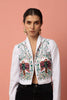 Experience the allure of our white jacket, lined with tafta for comfort and adorned with vibrant red and green beadwork for a touch of elegance.