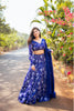 Collections 1 Violet Lotus Print Lehenga: Dark Blue - XS item is already added to cart!